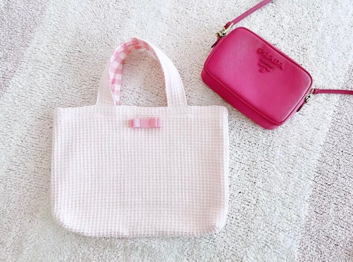 <【セット】ワッフルミニバッグ&グログランリボンブローチ(ピンクセット)>